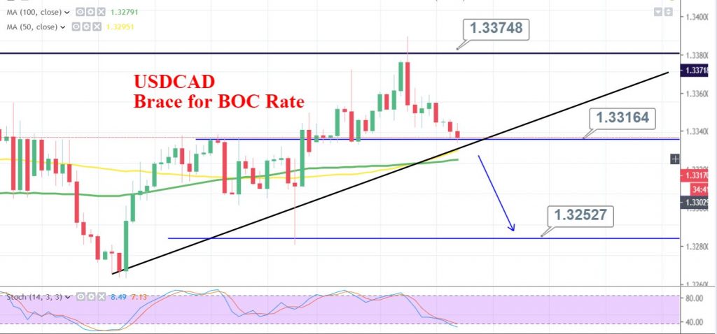 Let’s say if Bank of Canada cuts the interest rate from 1.75% to 1.50%, we are likely to a sharp surge in USD/CAD and it may lead toward 1.3375 and 1.3400 in an initial response.