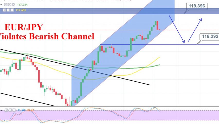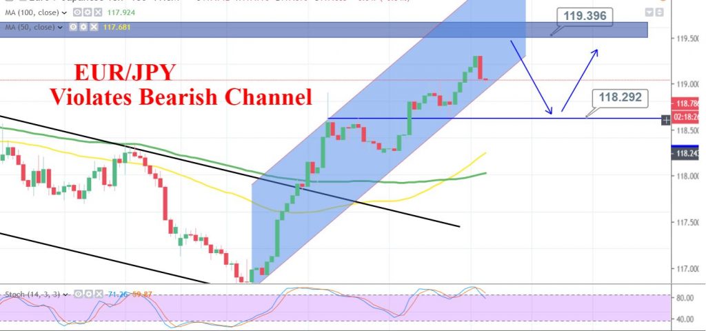 Technically, EUR/JPY is holding at 118.700 area as the bullish channel is supporting the pair.