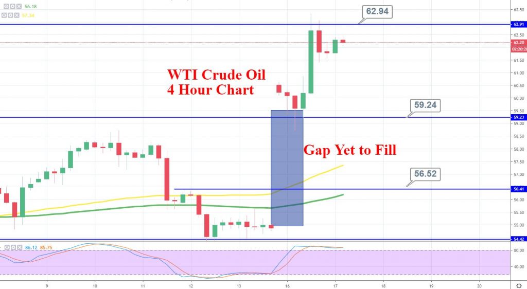 Technically, crude oil is holding below $62.95 level, which is extending substantial resistance to the crude oil. Typically, the market fills the gaps before continuation of a trend, but in this case, the fundamentals are pretty bullish, which is why we may see crude oil staying bullish. On the lower side, crude oil may find support around $59.25 area.