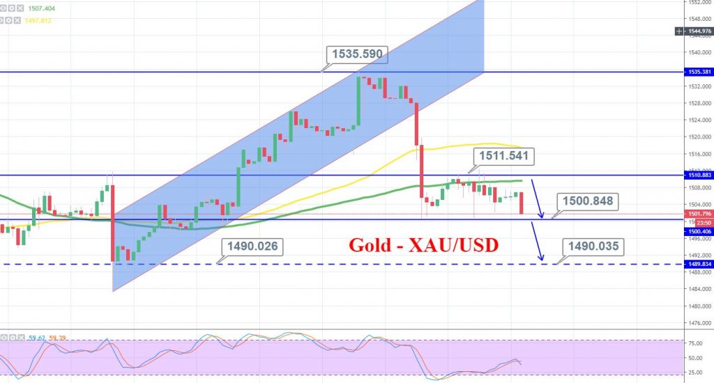 The RSI and Stochastics are holding in the selling zone, suggesting odds of a bearish trend in gold. Later, we can expect a continuation of a bearish trend below 1,505 area today.