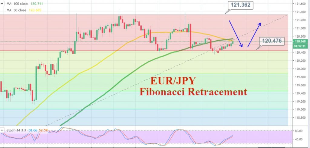 Zooming out on the 4-hour chart, the pair is consolidating above the triple top support area of 120.400. Bullish bias above this level is extending the buying trend in EUR/JPY.