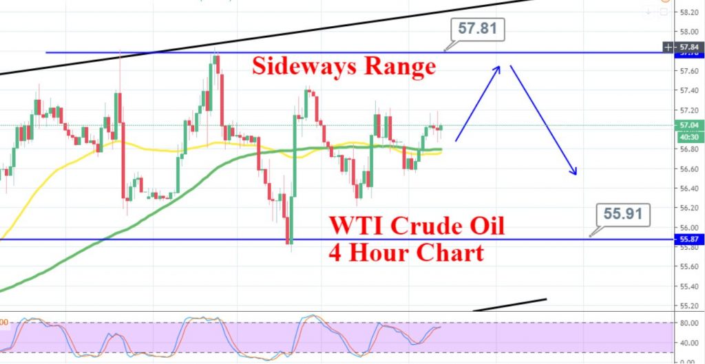 Technically, crude oil is trading sideways around $56.85 area, having a solid resistance at $57.25. A bullish breakout of $57.20 is likely to lead crude oil prices towards $57.75.