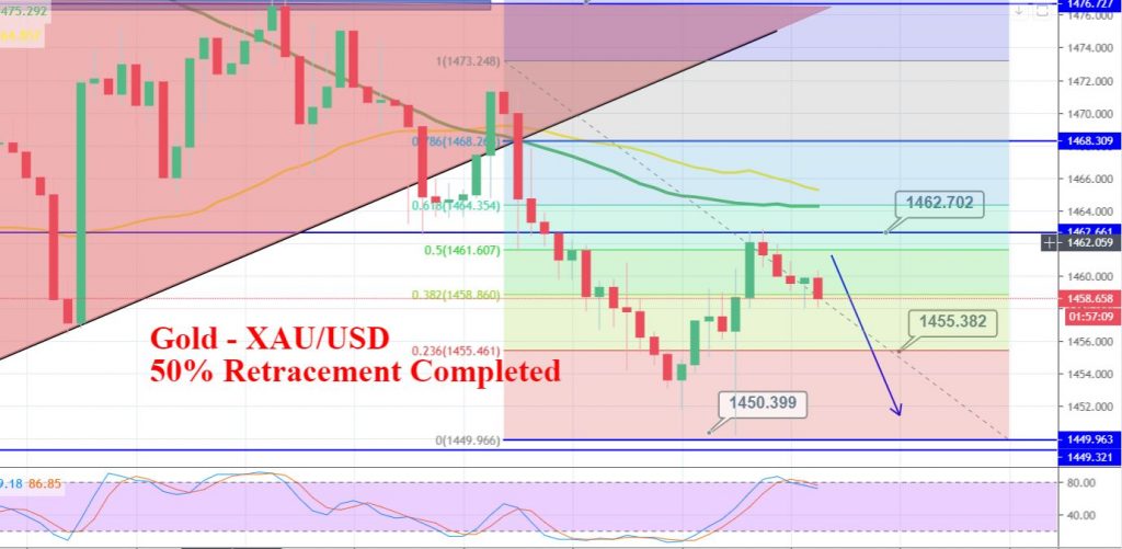 On Tuesday, Gold’s role as a safe-haven hedge against the trade war was seen after the latest round of trade talks, but the upward trend was within limits due to uncertain result hopes.