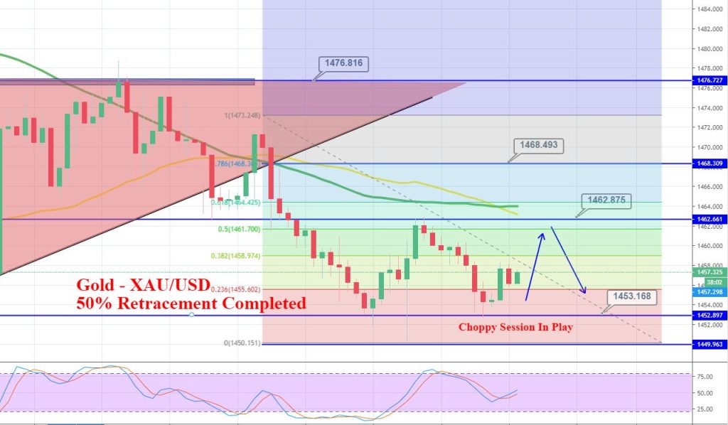 Gold prices closed at $14555.77 after placing a high of $1458.290 and a low of $1454.190. Overall the trend of gold remained slight bullish.
