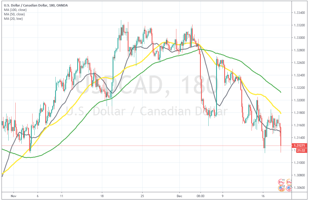On Monday we opened a sell forex signal in USD/CAD , as this pair was retracing higher. The trend has been bearish since the beginning of this month, after OPEC+ decided to cut Crude Oil production again, by an additional 50k barrels/day, which helped Oil price climb higher, as well as the CAD, since this currency is closely correlated to Crude Oil.