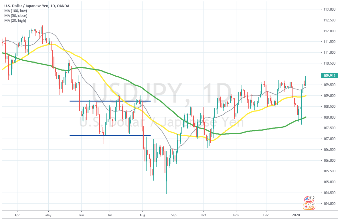 The tensions between US and Iran hurt the sentiment for some time, but weren’t enough to turn this pair bearish again, especially since they are de-escalating. So, the 100 SMA turned into support this time, after USD/JPY had been leaning on the 50 MSA (yellow) for months. Now buyers are back in control for this pair and they are pushing higher.