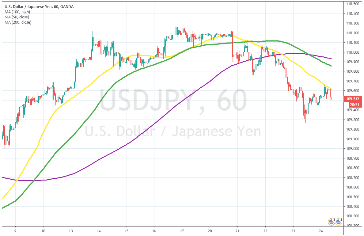 As a result, USD/JPY has turned bearish again, as safe havens attract bids. USD/JPY fell to 109.20s, but it was retracing higher yesterday. Although, buyers couldn’t push above the 50 SMA (yellow) on the H1 chart, which has been providing resistance since yesterday. They failed to push above it, and instead the 50 SMA pushed the price down. The virus is still strong in China, so I suppose the sentiment will remain negative and USD/JPY will remain bearish.