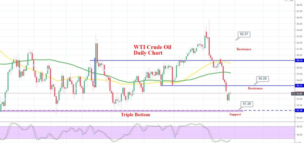 WTI finally showed some bullish trend, but it still stays below 55.30. The RSI and Stochastics are in the oversold region, but it’s trying to come out of the oversold range. For now, US Oil may find support around 51.30. So we can look for selling trades below 55.30 and bullish above 53.50.
