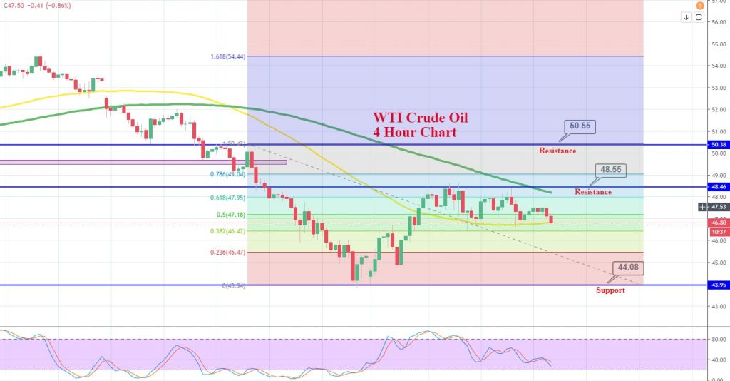 On the technical side, crude oil is trading below 61.8% Fibonacci retracement level of 47.85. Continuation of a bullish trend can lead WTI prices towards the next resistance level of 49.60. While the 100 periods EMA is extending resistance at 48.86 level.