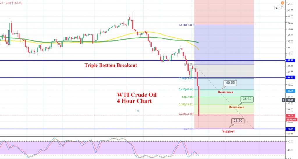 WTI can retrace back until 38.2% Fibonacci retracement to 35.50. We can consider taking another sell position below 35 with a target of 29.70. Good luck!