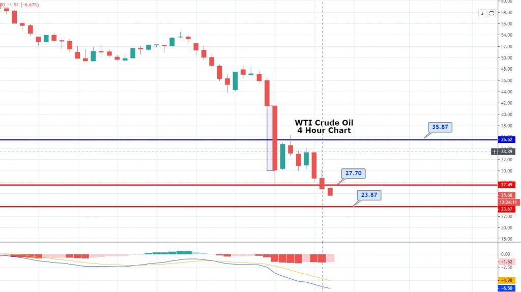 Today in the early Asian session, WTI crude oil prices dropped to its lowest level in almost 17 years, mainly due to intensifying coronavirus fears, hitting demand just as supply drops. As of writing, WTI crude prices are currently trading at 26.56 and consolidates in the range between the 26.28 – 27.60. As we know, oil prices have recently recovered from 49-month lows clocked in early Asian session due to losses in the US stock futures.