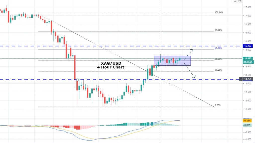The bullion market is on a bullish run in the wake of an increased number of coronavirus cases all over the globe, which have heightened uncertainties in the market. The safe-haven asset silver has surged to trade around 14.70, having traded in a sideways trading range of 14.70 – 14.05.