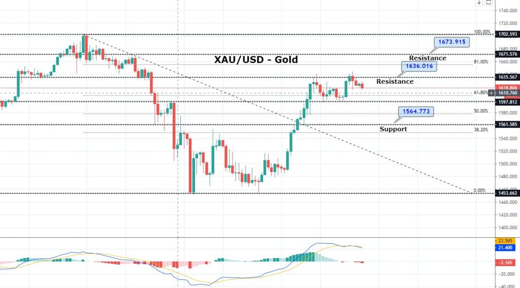 Gold is currently trading at 1,633.90 and consolidates in the range between 1,631.10 and 1,647.20. Although, the intensifying coronavirus headlines remain in focus because the US took the lead in the list of cases.
