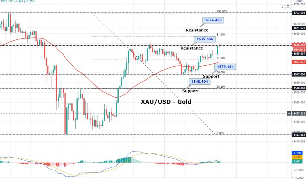Worse than expected, US NFP figures are likely to trigger a bullish breakout and lead gold prices towards the next target level of 1,633 and 1,642. Alternatively, a bearish breakout can lead to gold prices lower to 1,594 areas. The bullish bias remains strong. Good luck!