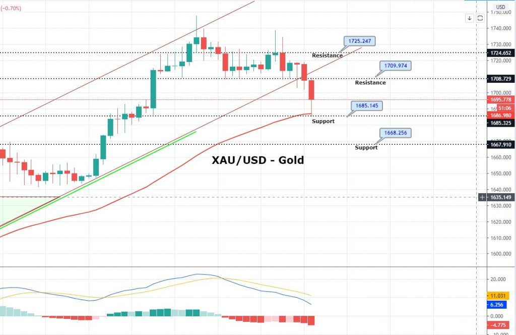 Gold prices exhibited a dramatic bearish trend, falling from 1,717 level to 1,696 level, and most of the selling was triggered following a ..