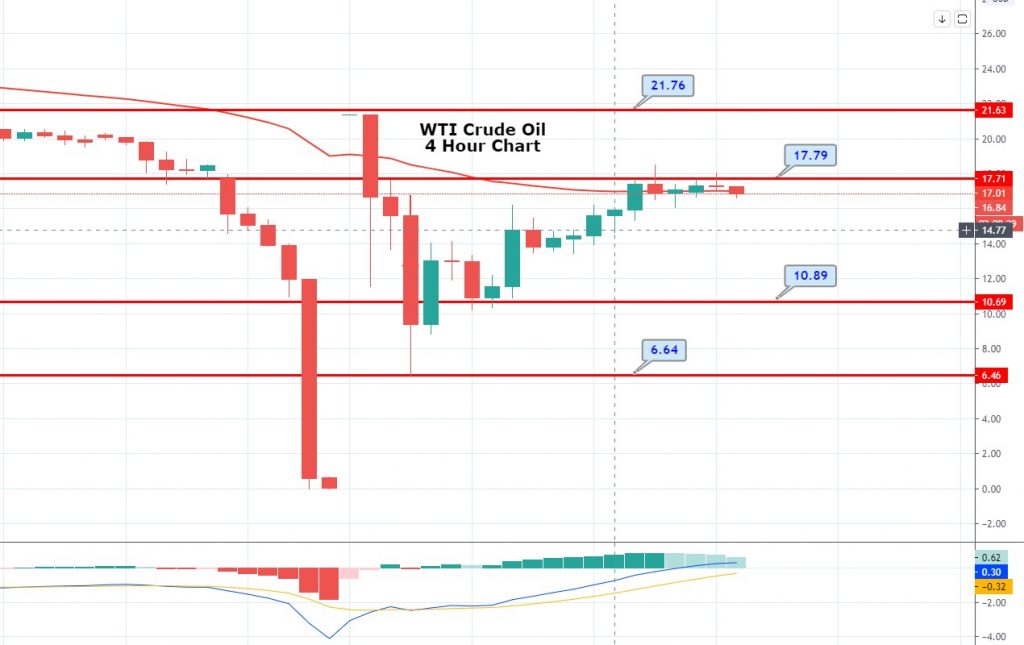 As of writing, a barrel of WTI oil is changing hands at $17.25 per barrel, higher 5% on the day, having jumped from $15.80 to $17.56 during the overnight trade. However, prices are still trading below $18.26 during Friday’s Asian trading hours.