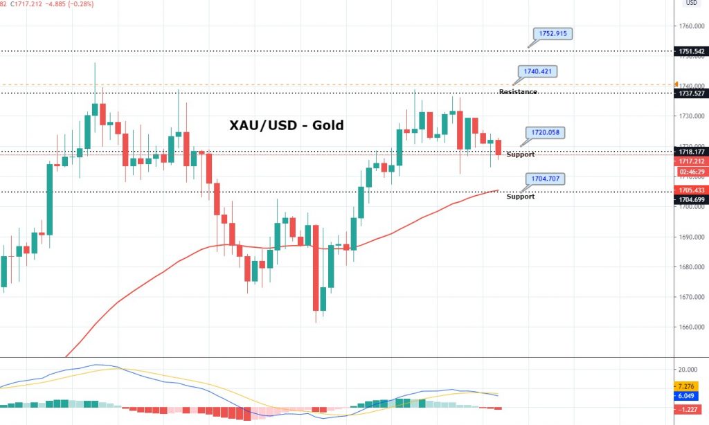 During Monday’s Asian session, the safe haven metal prices edged slightly up mainly due to continuous economic stimulus in order to control the COVID-19 pandemic’s economic woes. Earlier in the day, GOLD prices registered 0.30% losses. Whereas, the yellow metal prices remain under pressure due to the lack of major catalysts in the day ahead. As of writing, gold is currently trading at 1,732.15 and consolidating in the range between 1,731.50 and 1,745.75.