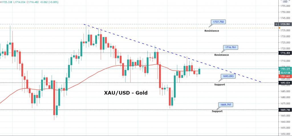 Gold prices closed at 1700.67 after placing a high of 1714.26 and a low of 1691.87. Overall the movement of GOLD remained bullish throughout the day, but it ended at the same level it started its day with. Gold rose on Monday on the rising threats of a new trade war between the United States and China over the COVID-19 pandemic global spread. A 0.4% rise in prices could be seen on Monday due to emerging safe-haven appeal in the market.
