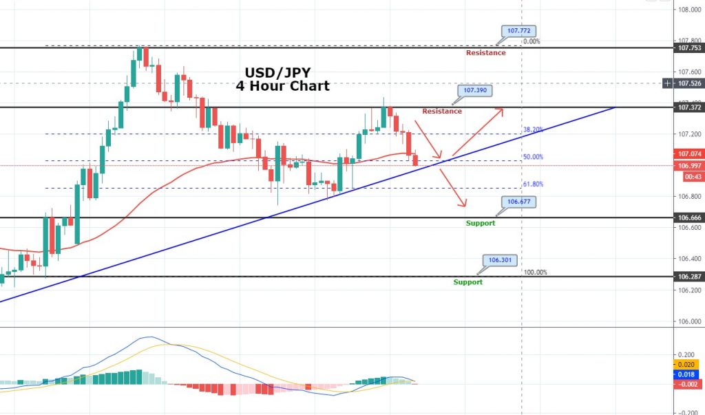On the technical front, the USD/JPY is trading at 107, where the upward trendline is likely to support it on the 2-hour timeframe...