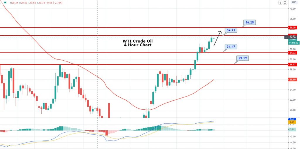 The WTI crude oil prices are trading with a bullish bias around 34.25 level, holding just below an immediate resistance level of 34.71 and 3