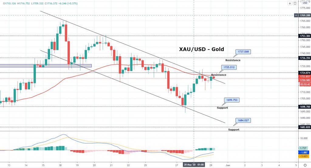 On Thursday, GOLD prices stayed above the level of $1700 on the back of another rise in weekly unemployment numbers issued by the United States. Because of COVID-19, a total of 41 Million Americans have become jobless now. After the coronavirus pandemic almost crippled the US economy from the previous nine weeks, 39 million people lost jobs. The US Labor Department said on Thursday that last week, over 2.1 million Americans applied for jobless claims, which made a total of 41 million jobless people in 10 weeks.