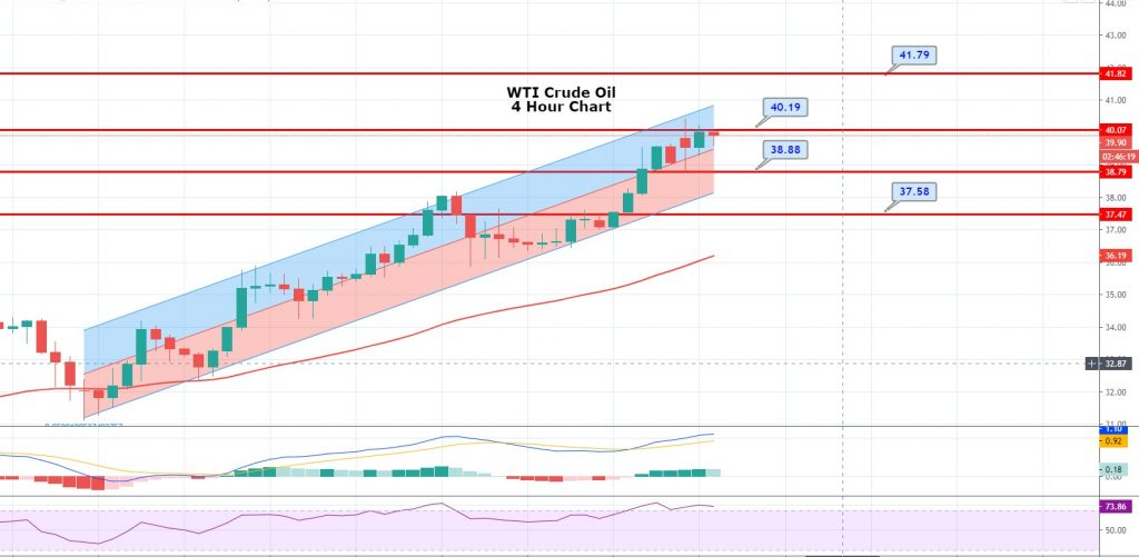 The WTI crude oil prices are likely to find resistance around the 40.19 level. A bullish breakout of 40.19 level can lead to further higher