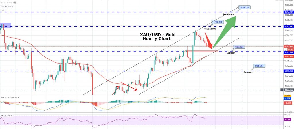 The yellow metal gold prices closed at $1738.28 after placing a high of $1739.80 and a low of $1708.02. Overall the movement of gold remained bullish throughout the day. GOLD rose about 1% on the day and continued its bullish streak for the third consecutive day on Wednesday after the US Federal Reserve held its interest rates near zero and signaled it to remain there for the next few years.