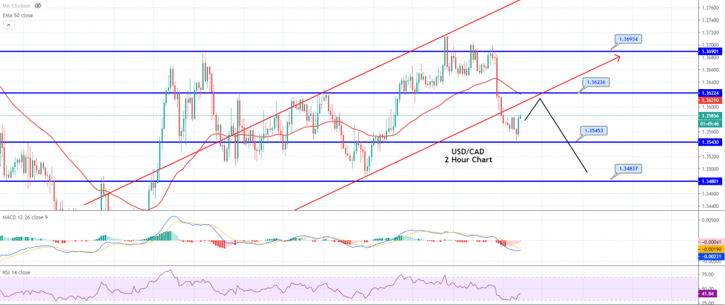 The US dollar was also weak in the late trading session, due to comments from Federal Reserve Chairman Jerome Powell. According to Powell, the US economic outlook was better, due to positive data, but the road to recovery was uncertain and gloomy. He said that the second outbreak of the virus had made the consumer less confident regarding economic activity and that recovery was not possible given the lack of consumer confidence. A weaker US dollar added to the losses of the USD/CAD pair on Tuesday, dragging it below the 1.35690 level.