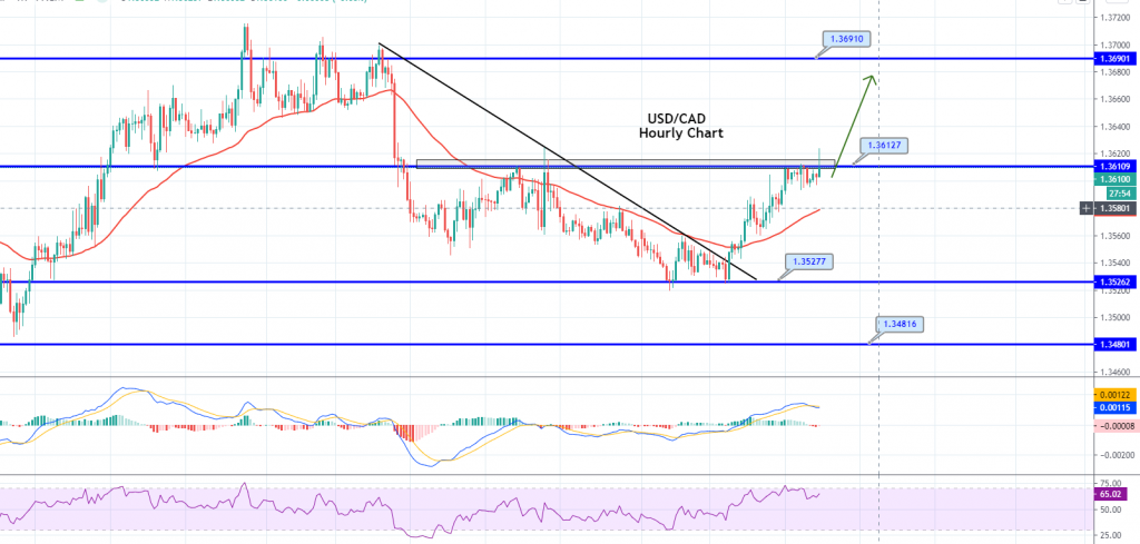 Fellas, the USD/CAD closed at 1.36036, after placing a high of 1.36095 and a low of 1.35246. Overall the movement of the USD/CAD pair remained bullish throughout the day. After posting losses for three consecutive days, the USD/CAD pair rose on Tuesday, reversing its direction on the strong US dollar. The bullish move came in, despite better-than-expected Ivey PMI data from Canada.