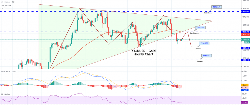 Gold is trading with a bearish bias at 1,797, with immediate support in around the 1,795/93 area. On the higher side, resistance remains somewhere on the 1,801 to 1,809 level today. Simultaneously, a bearish breakout of 1,793 support could lead gold prices further down, towards the 1,787 and 1,773 levels. During the US session, a breakout could be experienced upon the release of CPI and Core CPI figures. Good luck!