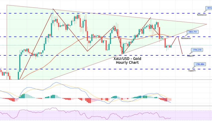 Gold is trading with a bearish bias at 1,797, with immediate support in around the 1,795/93 area. On the higher side, resistance remains som