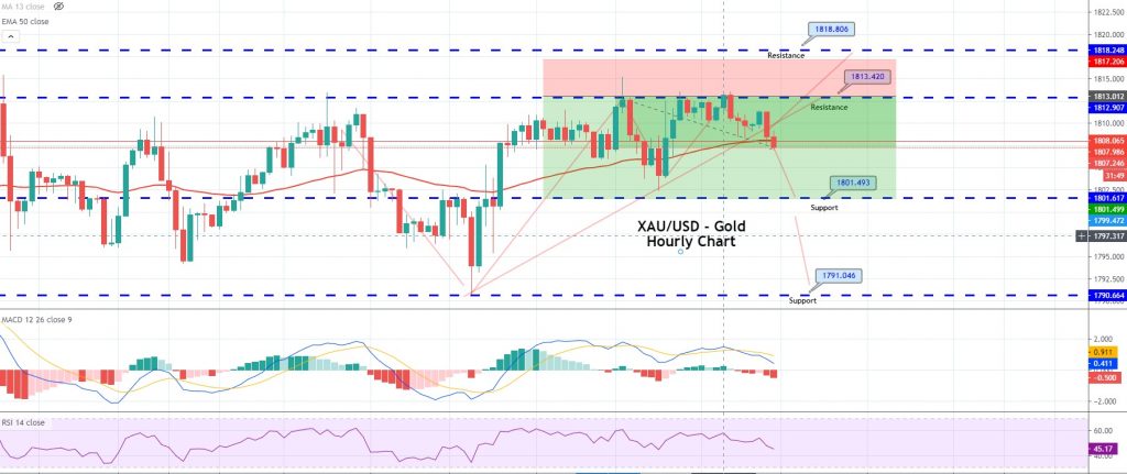 The precious metal GOLD prices closed at 1810.15, after placing a high of 1815.04 and a low 1802.62. Overall, the movement of gold remained bullish throughout the day. The gold prices extended their bullish bias of the previous day, posting gains for the 3rd consecutive day on Wednesday, on the back of the latest speech by President Donald Trump and an increase in US-China tensions.
