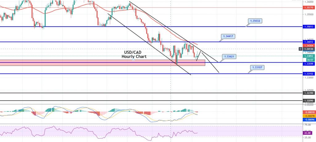 The USD/CAD is trading with a neutral bias at around 1.3385, and overall it is remaining within a bearish channel that provides resistance..