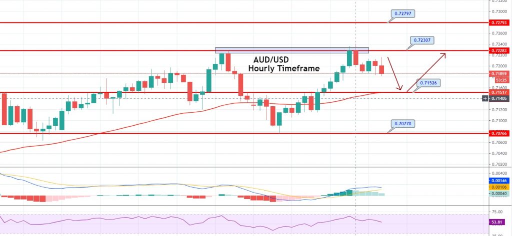 The AUD/USD pair closed at 0.71910, after placing a high of 0.72407 and a low of 0.71420. Overall, the movement of AUD/USD pair remained bullish throughout the day. The AUD/USD pair climbed further, beyond the 0.7200 level, posting the highest levels since February 2019 on Wednesday, based on the weakness of the broad-based US dollar.