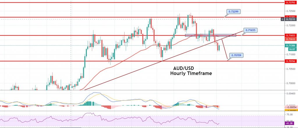 The AUD/USD closed at 0.71433, after placing a high of 0.71895 and a low of 0.71348. Overall, the movement of the AUD/USD pair remained flat, yet slightly bearish, throughout the day. In the first session of the day, the AUD/USD pair rose, on the back of the improved risk sentiment in the market, whereas after the release of the US data, the AUD/USD pair started to lose traction, dropping to lose all of its gains for the day.
