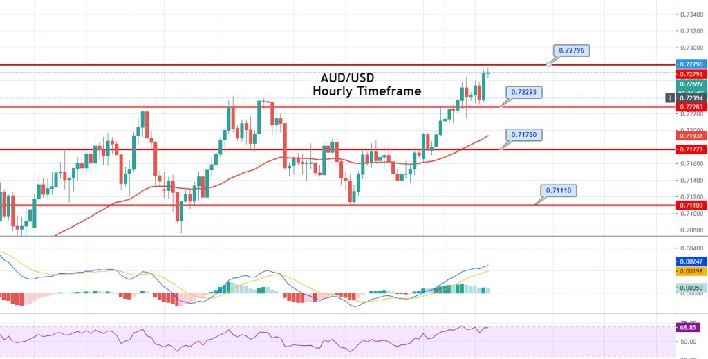 The AUD/USD pair closed at 0.72426 after, a high of 0.72643 and a low of 0.72086. Overall, the movement of the AUD/USD pair remained bullish throughout the day. The AUD/USD pair extended its gains, rising for the third consecutive day on Tuesday, as Australia’s central bank does not see any need to ease the policy further.