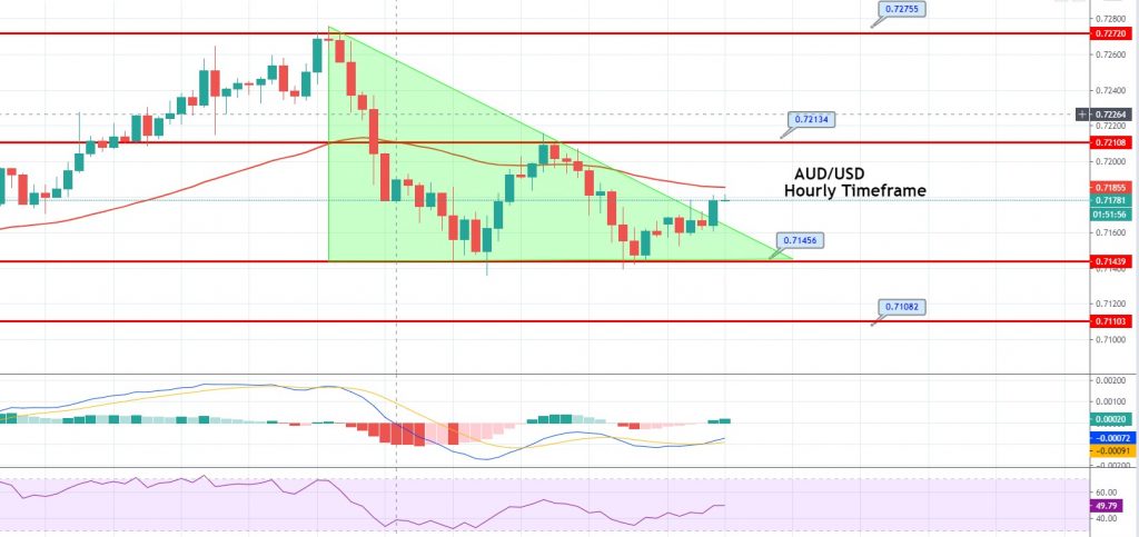 The AUD/USD pair closed at 0.71604, after placing a high of 0.72157 and a low of 0.71391. Overall, the movement of the AUD/USD pair remained bearish throughout the day. The currency pair was declining on Friday, amid the increased uncertainty in the market and the increasing strength of the US dollar.