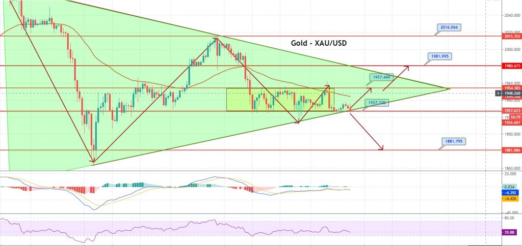 Gold prices continue to follow the same technical outlook. Gold is trading at 1,933 level and continues to trade sideways with on descending