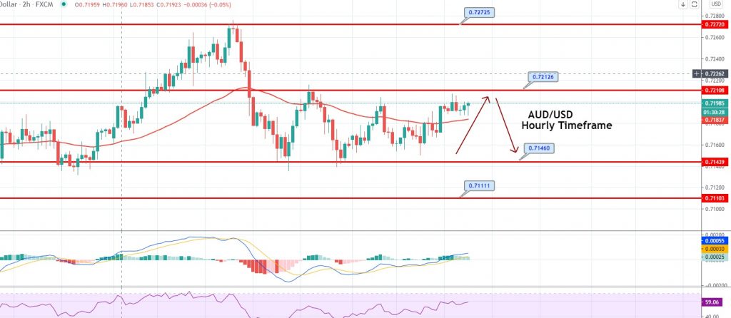 The AUD/USD pair closed at 0.71935, after placing a high of 0.71975, and a low of 0.71499. Overall, the movement of the AUD/USD pair remained bullish throughout the day. The AUD/USD currency pair surged on Tuesday, amid an increased risk appetite in the market and the weakness of the broad-based US dollar. The easing of the mood surrounding the US-China issues helped the risk-sensitive Aussie to find demand in the market.