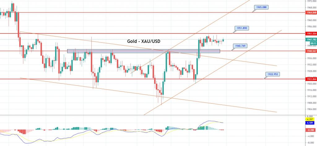 The precious metal gold has violated the resistance level of 1,935 level, and now it's facing resistance at 1,949 level. On the higher side.
