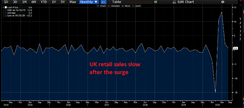Retail sales took a plunge in March and April, declining more than 23% during the lockdown months. But they jumped higher by around 26% in May and June, while in July, they grew by 3.6%, which was revised higher to 3.7% today. But, they are cooling off now, increasing by just 0.6% in August. However, there were no summer beach holidays this year, so people didn’t spend much money on summer items. On the other hand, the YoY sales continue to increase, which is a positive sign.
