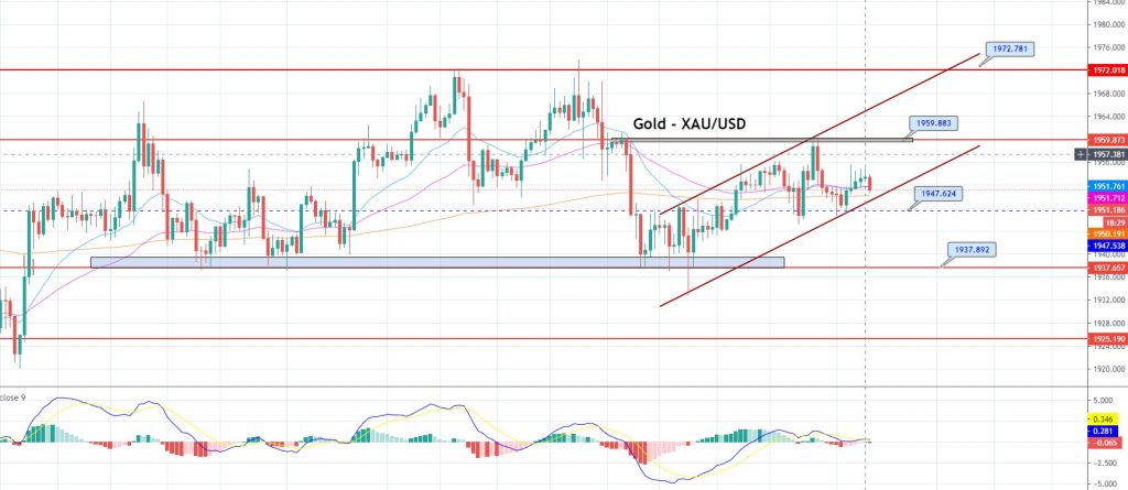 Gold is trading with a mixed bias at 1,952 level and a bullish crossover of 1,949 level is exposing gold's upward movement until the 1,955..