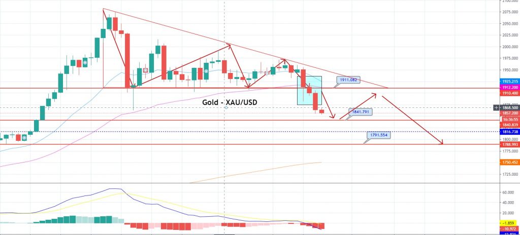 On the technical front, the XAU/USD is trading with a strong bearish bias at the 1,858 level. In the daily timeframe, gold has violated the descending triangle pattern, extending support at the 1,911 level, and now it is working as resistance. On the lower side, gold may find support at the 1,841 level, and above this, it could bounce off. The leading indicators, such as MACD, also suggest a selling bias in the precious metal. Let’s go for selling trades below the 1,862 level today. Good luck!