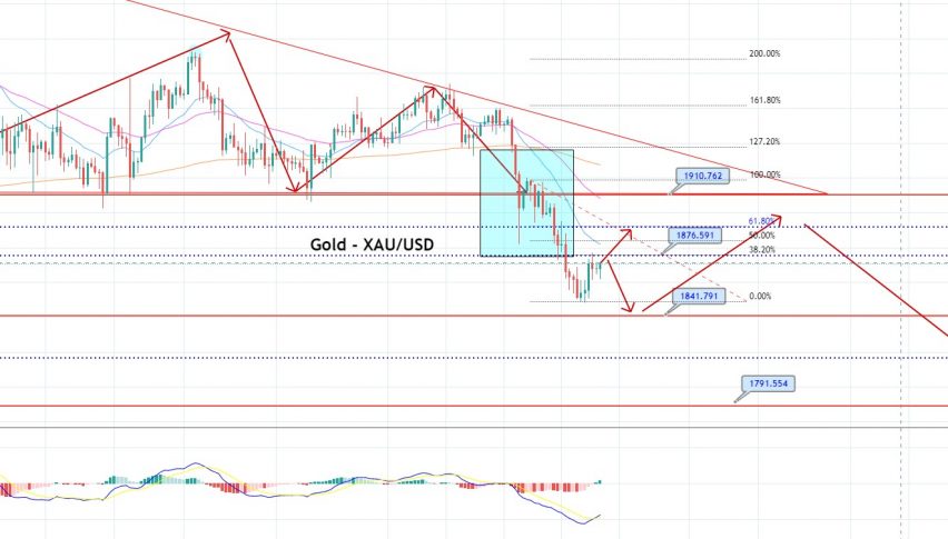 The bearish bias of GOLD seems to be fading, as traders have started doing profit-taking in the overbought zone at the 1,871 level. The closing of the Doji candle on the daily timeframe is likely to drive upward movement in the market until the 38.2% Fibonacci retracement level of 1,895. On the higher side, all eyes are focused on the 1,877 level, as this is a trendsetter for today; below this, the gold price could drop until the 1,858 and 1,846 levels. At the same time, the bullish crossover at the 1,877 level may lead gold price towards 1,895. Good luck!