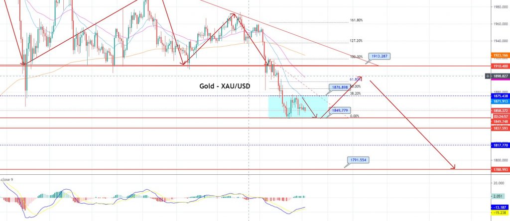 Choppy trading in the precious metal, GOLD, continues, due to a lack of major fundamentals in the market. The closing of the Doji candle on the daily timeframe is likely to drive upward movement in the market until the 23.6 Fibonacci retracement level of 1,877. On the higher side, the bullish breakout at 1,877 may lead gold prices towards the 38.2% Fibo level of 1,895. Below 1,877, the gold price could drop until the 1,858 and 1,846 levels. A neutral bias prevails in the market today. Good luck!