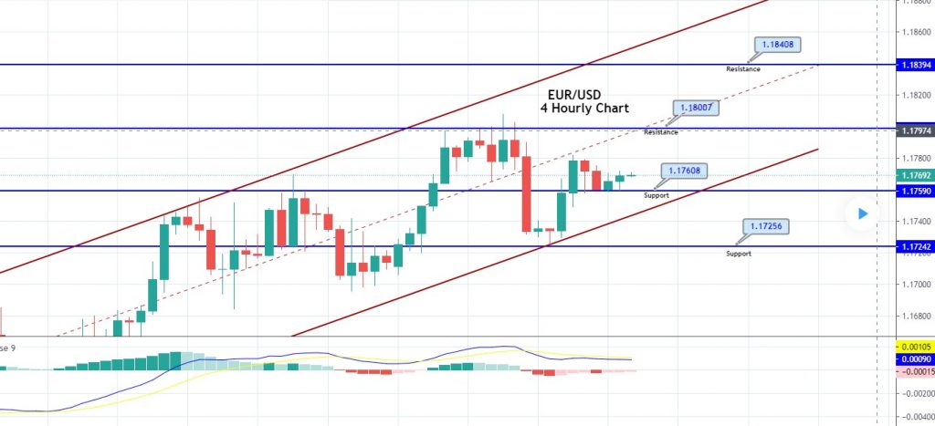 On the technical side, the EUR/USD pair is trading with a bullish bias at around the 1.1760 level. The closing of candles above the 1.1760 level is likely to drive the bullish trend in the direct currency pair until the next resistance area of 1.1800. On the 4-hour timeframe, the EUR/USD has also formed a bullish channel that supports the buying trend in the EUR. The idea is to take a buying trade over 1.1760 or a sell trade below 1.1760, to target a quick 40 pips on either side. Good luck!