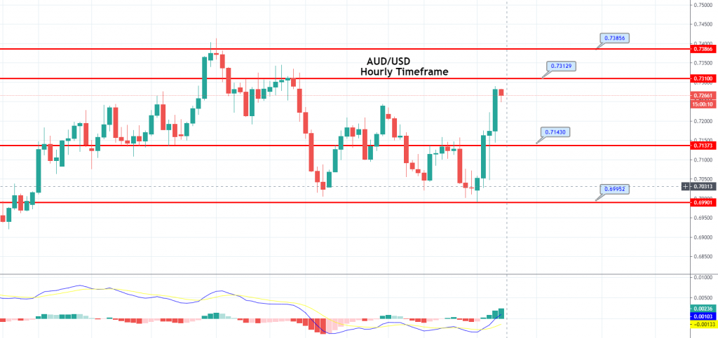 The [[AUD/USD]] pair was closed at 0.72831 after placing a high of 0.72890 and a low of 0.71447. The [[AUD/USD]] pair was surged to its high