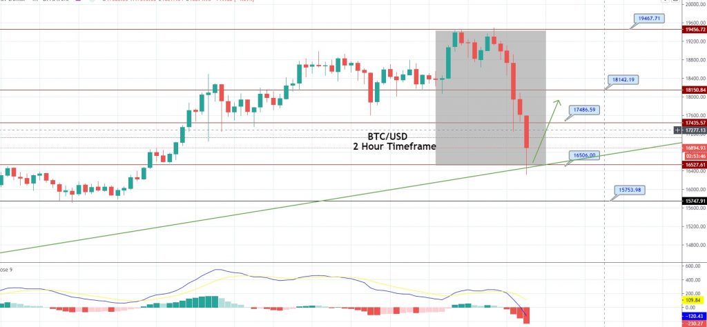 Bitcoin has slumped by a whopping 8.7% since the start of the trading day. The BTC/USD price has dropped from 19,467 level to the 16,527 mark on the four-hourly timeframes, perhaps on the back of profit-taking after the recent rally. The speculation about tighter regulations was among the reasons for the shift lower.