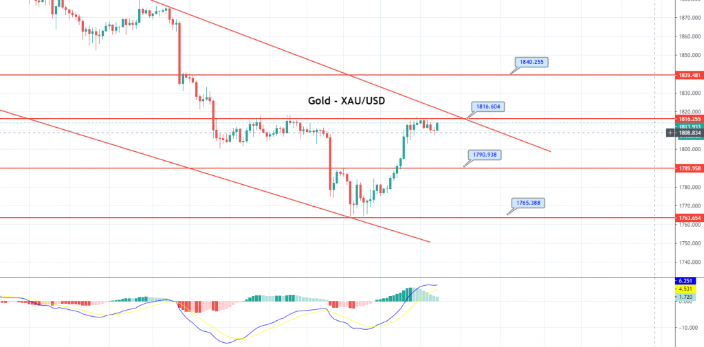 The GOLD prices closed at 1,814.98, after placing a high of 1,817.26, and a low of 1,775.70. After suffering losses for two consecutive days, GOLD rose by almost 2.1% on Tuesday, due to the weakness of the US dollar and the resumption of talks over a US fiscal stimulus plan to relieve the effects of the pandemic.