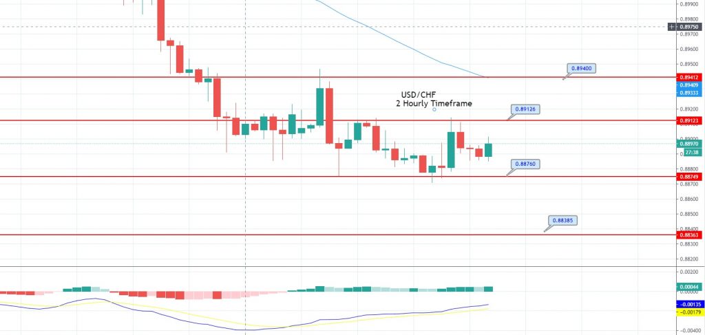 The USD/CHF pair is trading sideways between a narrow trading range of 0.8912 - 0.8876. The dollar index seems to trade with a mixed bias...